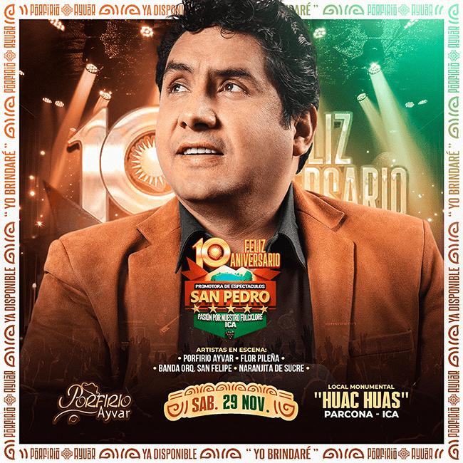 PORFIRIO AYVAR ALFARO es un artista nato, intenta dar rienda suelta a su talento, transmite sus sentimientos y emociones en su voz.
